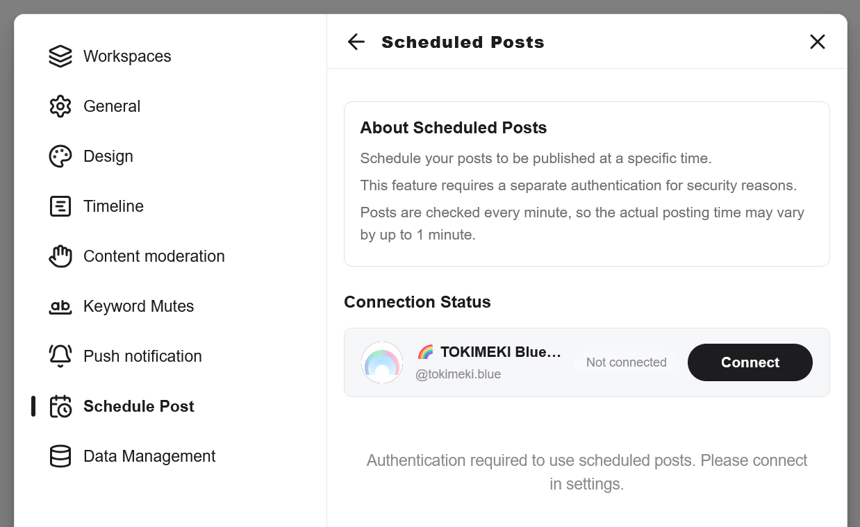 While you can use just the scheduled posting feature, we strongly encourage you to continue using TOKIMEKI, which also offers drafts, repost mutes, and private local lists!!!