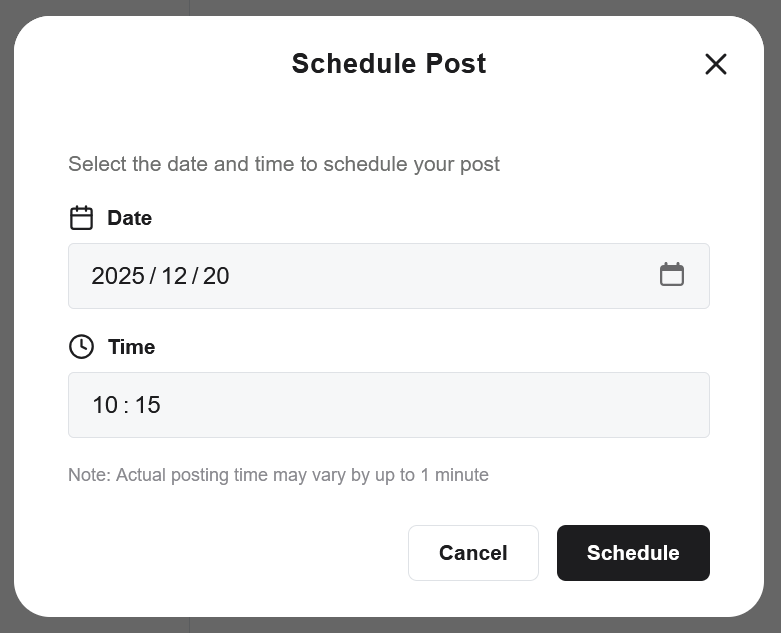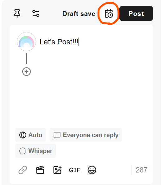 Press the 📅 button on the post screen to open the scheduled posting settings.